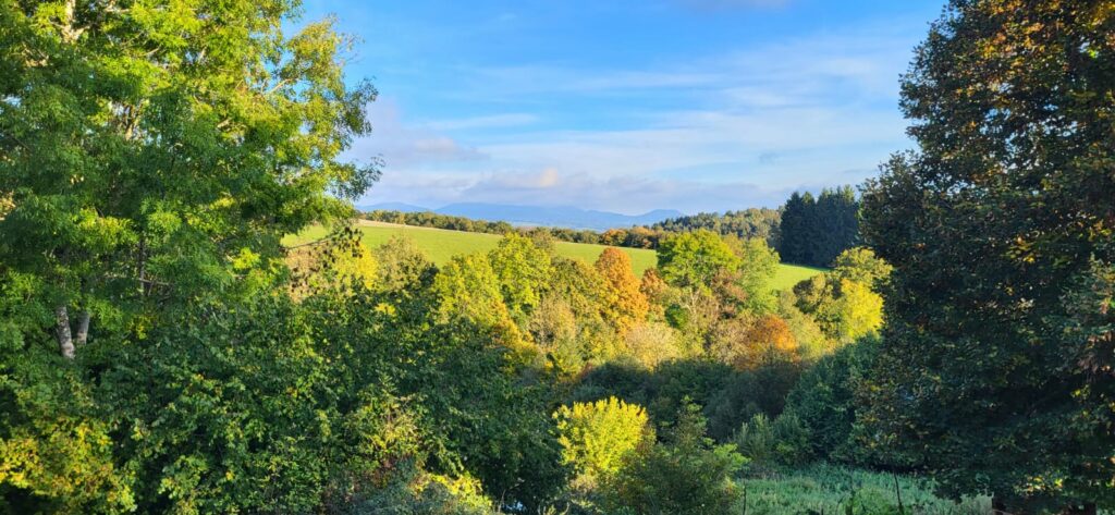 Spacieuse et baignée de lumière, la chambre Bouddhanath offre une vue panoramique sur la chaîne des Puys. C’est un espace paisible, propice à la détente et à la contemplation.