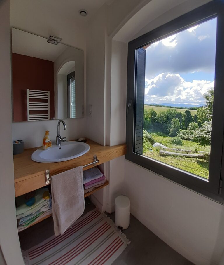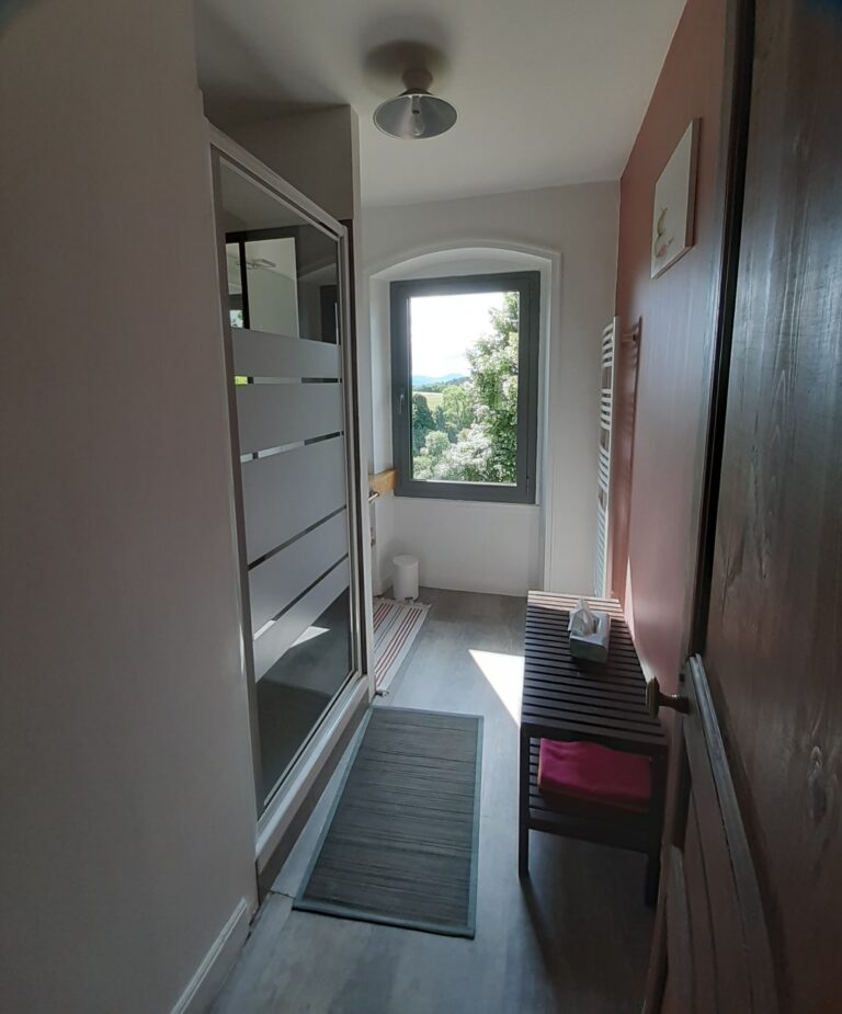 Son petit balcon privé vous offre une vue imprenable sur le Puy de Dôme et le massif du Sancy, un vrai bol d’air dès le réveil. C’est une chambre vivante et paisible à la fois, comme un clin d’œil à l’effervescence douce des ruelles népalaises.